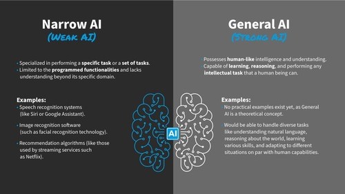 The two general categories of AI are general and narrow.